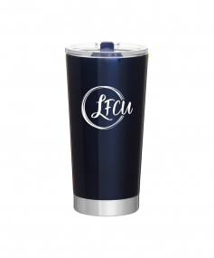 20 oz double wall 18/8 stainless steel thermal tumbler with vacuum insulation, and clear acrylic push-on swivel lid. Hand wash recommended. Do not microwave. Complies with FDA, Prop 65. 7.125" H x 3.75" W